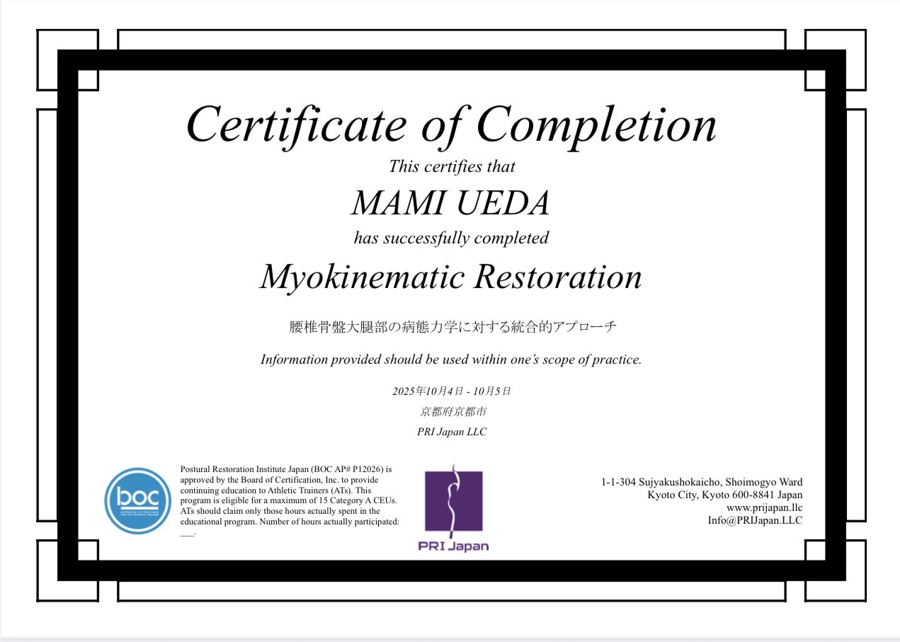 Myokinematic Restoration Certificate of Completion